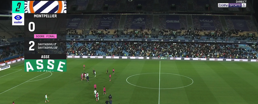 Malheureusement pour l'impression générale, ce genre d'action n'a pas été si fréquent que ça dans ce match. La faute à de nombreuses pertes de balle, provoquées par l'intensité et l'agressivité des joueurs montpelliérains, mais aussi car les Stéphanois avaient creusé l'écart au score assez rapidement. Et à d'autres moments les Verts ont préféré des longues séquences de possession seulement pour calmer le jeu, sans enclencher de vraies offensives rapides ensuite. Néanmoins, ils ont montré que s'ils savent maîtriser le rythme, ils décident quand poser le jeu et quand accélérer, et ils peuvent faire très mal à leurs adversaires quand ils attaquent réellement.