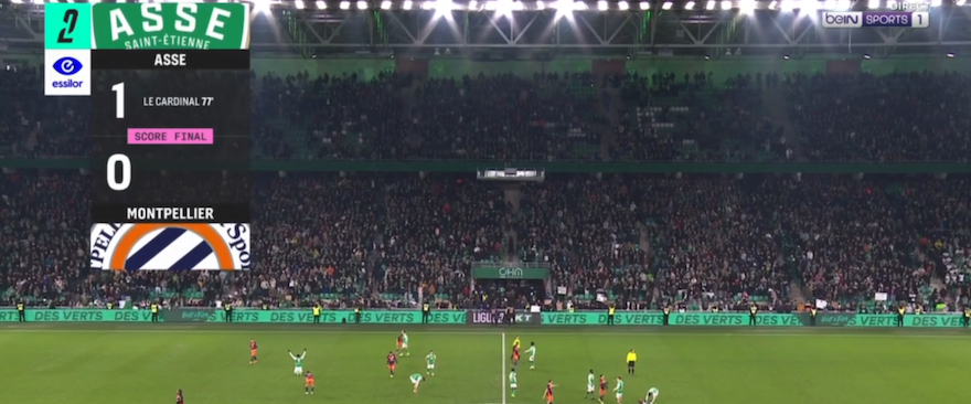 ... à la 75e minute, quand les Montpelliérains jouent une touche, le bloc stéphanois est en place et coulisse bien sur le changement de côté :