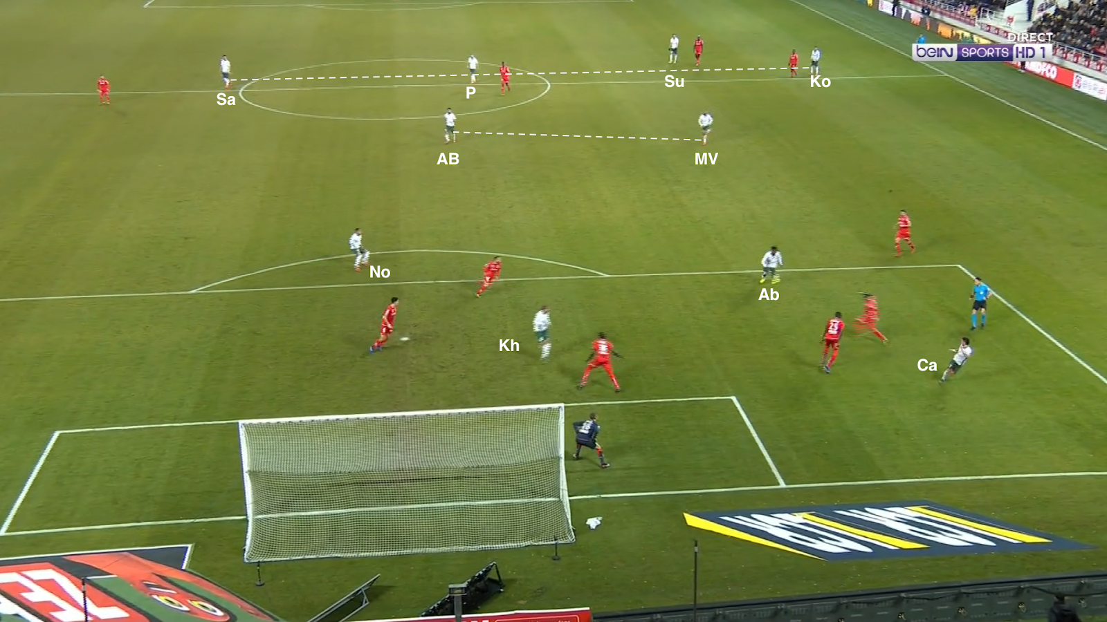 Cabella est toujours placé à côté de Silva, il est trouvé par la passe de Subotic mais préfère jouer en retrait avec Perrin. Subotic reçoit de nouveau le ballon...