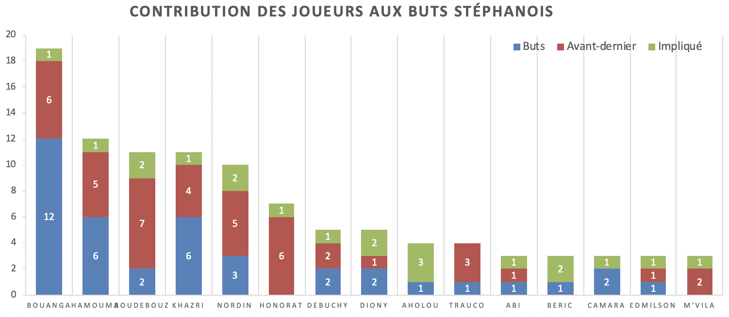 Pour être complet, d'autres joueurs ont contribué à des buts cette saison : Fofana et Kolo ont marqué 2 buts chacun, Cabaye en a marqué un et contribué à un autre. Silva et Benkhedim ont marqué un but chacun et Perrin et Saliba n'ont pas marqué, mais ont été impliqués dans un chacun. Le dernier permettant d'ailleurs à Boudebouz de qualifier les Verts en finale de la Coupe de France.