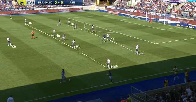 C'était le premier match de l'ASSE avec les deux amis d'enfance Cabella et Khazri ensemble sur le terrain. Des profils similaires, mais pas identiques, et le staff des Verts avait une idée très claire de comment les faire jouer ensemble. Malheureusement, ce plan initial a été contrarié par l'expulsion de Subotic dès la 18e minute et ensuite par la sortie sur blessure de Hamouma. Les Stéphanois ont du s'y adapter et changer leur approche initiale, mais on a quand-même pu obtenir quelques indices pour comprendre l'animation offensive envisagée par les Verts pour cette saison. Mais avant l'attaque, la défense...