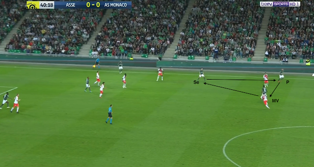 Déjà que les Monégasques étaient venus défendre, le pressing haut a servi à les contenir encore plus dans leur moitié, à les empêcher à construire. C'était donc à l'ASSE de faire le jeu et de construire des belles attaques placées. En voici deux exemples.
