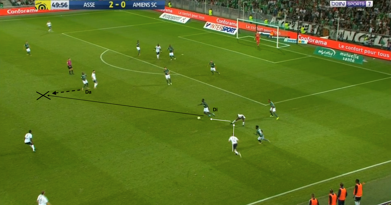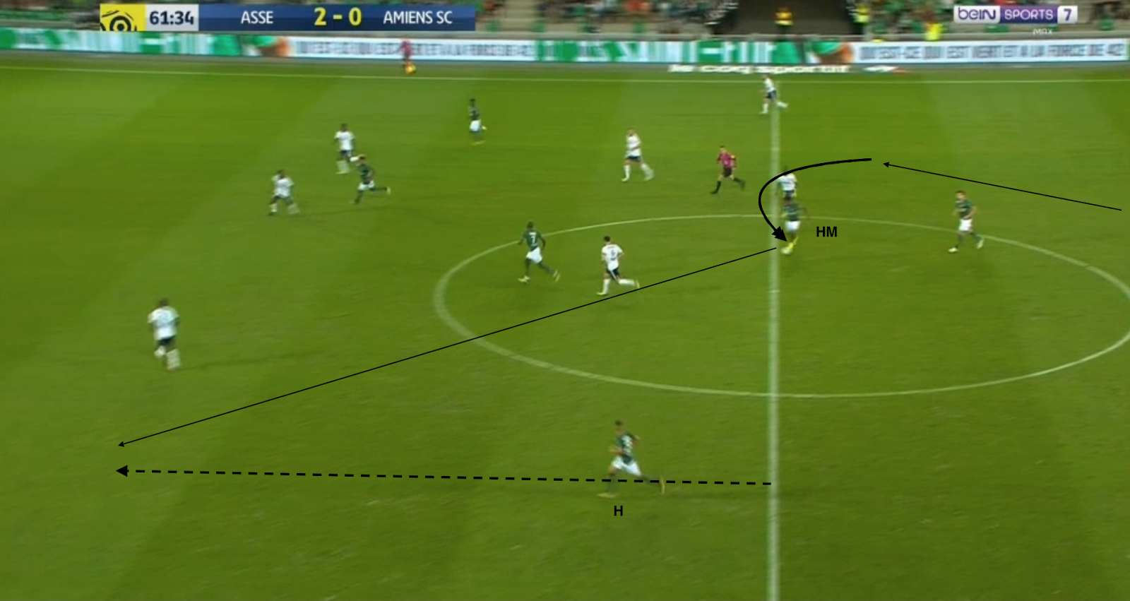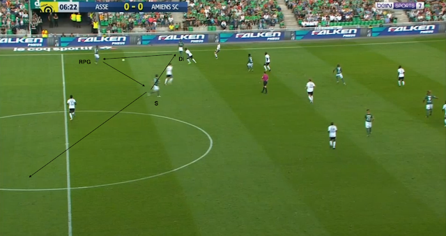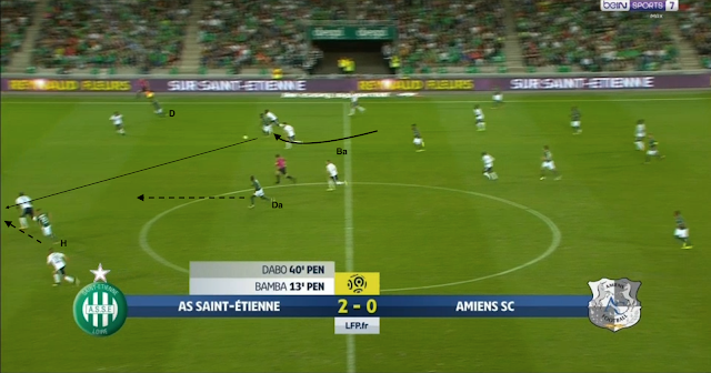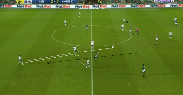 L'entrée de Maiga pour Diousse marque la fin des mauvais choix stéphanois dans la sortie de balle. Par contre, ce n'est pas directement lié au nouvel entrant, comme on peut le voir sur la toute première action après le changement :