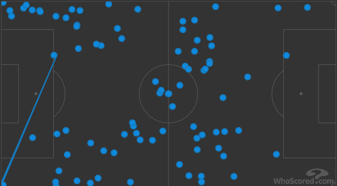 ... ce n'est plus du tout la même chose ! Ballons touchés plus haut sur le terrain, et aussi bien dans l'axe que sur les côtés.