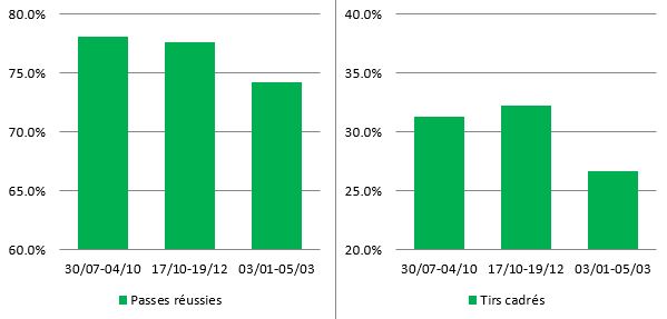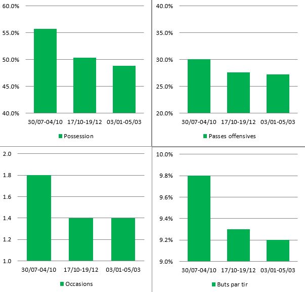 Côté pessimiste : les indicateurs statistiques tendent à prouver que le jeu stéphanois se délite de manière continue. Les résultats se maintiennent encore, mais ce n'est probablement qu'une question de temps. De toute façon, il faudra faire mieux que 13 points sur les neuf dernières rencontres pour aller chercher l'Europe. La tendance semble nous indiquer une fin de saison bien triste.