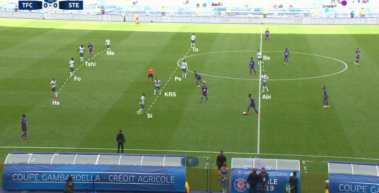 Il décide de jouer long sur Charle Abi, qui remet en arrière à Abdoulaye Sidibé. Malheureusement, la combinaison avec Tyrone Tormin (qui avait permuté avec Bilal Benkhedim) échoue.