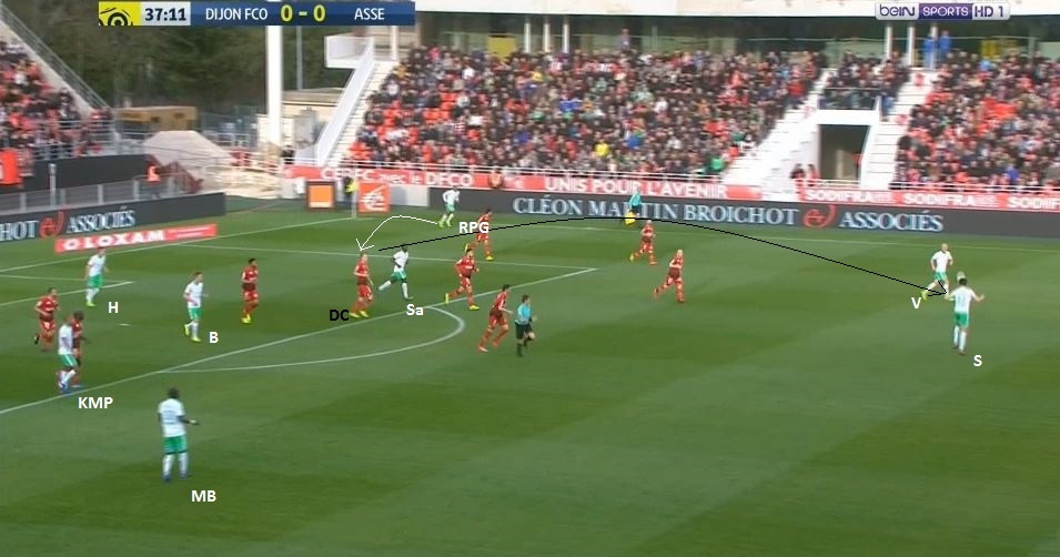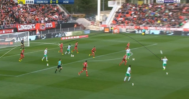Le ballon arrive à Veretout, Corgnet est démarqué et donc le même défenseur central va le chercher...