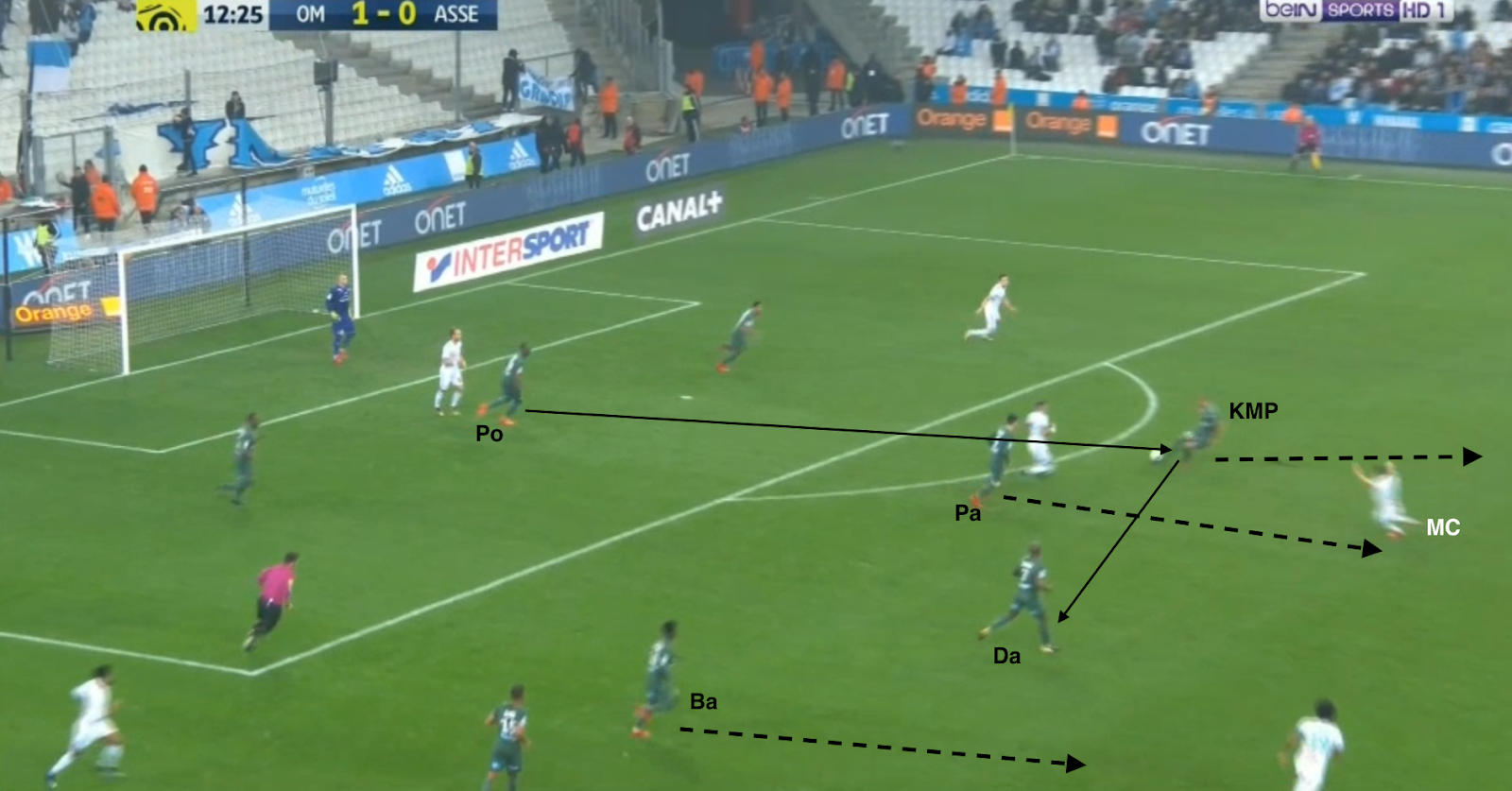 Son centre est repoussé par Pogba, jusqu'à KMP et l'ASSE a la possibilité de partir en contre :