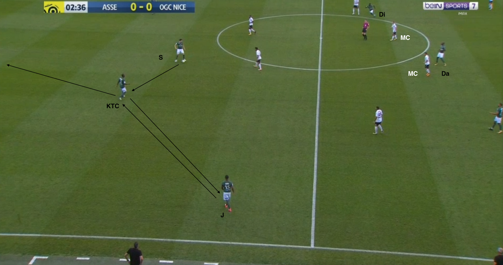 A titre d'exemple, la toute première action offensive stéphanoise du match :