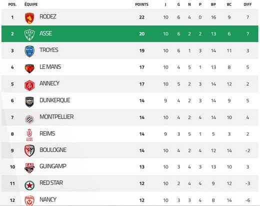 Si l'on établit ce classement sur les 10 derniers matchs, et Vertderennes l'a fait, on constate que la performance de Rodez s'inscrit dans la durée puisque, avec 6 victoires et 4 nuls, les Aveyronnais mènent la danse. Leur dernière défaite remonte au 7 novembre à Grenoble (2-1). Les Stéphanois paient, quant à eux, les derniers mauvais résultats de l'ère Horneland.