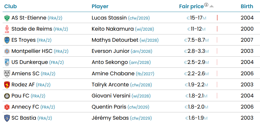 Depuis 2013, l’Observatoire du football du CIES (Centre International d'Etude du Sport) a développé un modèle statistique pour estimer scientifiquement la valeur de transfert des footballeurs. Cet outil permet d’accéder à la valeur estimée la plus élevée par club dans plus de 65 ligues dans le monde. Selon les chiffres mis à jour et publiés hier, Lucas Stassin est le joueur le plus bankable de l'ASSE et de la L2. Notre Diabotin vaut en effet entre 15 et 17 M€.