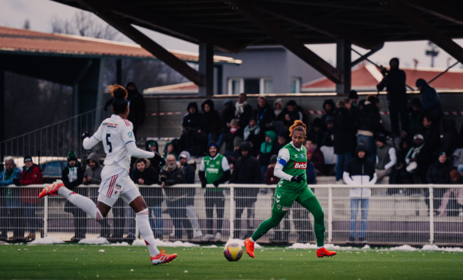 La neige s'étant invitée dans le Forez en fin de matinée, le match était démarré avec une heure de retard le temps de déneiger la pelouse de l'Etrat et les Stéphanoises reprenaient leur saison à 15H30. Mais les Lyonnaises, renforcées cet été par de nombreuses joueuses du PSG ne survolent pas le foot féminin hexagonal pour rien et la confrontation était trop déséquilibrée pour laisser place à un quelconque suspense : 1-0 à la 11e minute, 2-0 à la 19e, le match était déjà plié.